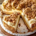 I love how this dessert blends three of my favorites—cheesecake, apple pie, and crumb topping—all in one slice. The smooth, tangy cheesecake base pairs beautifully with the tender cinnamon apples and the crunchy streusel on top. It’s great for fall, but honestly, I enjoy it year-round.