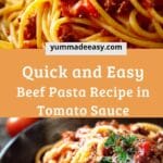 This beef pasta in tomato sauce is a hearty, comforting dish made with ground beef, savory herbs, and a rich tomato base tossed with tender pasta. It’s quick, satisfying, and perfect for weeknight dinners using pantry staples.