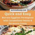 Burrata Eggplant Parmigiana with Caramelized Onions & Parmesan Cream