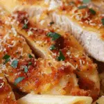 Cheddar Parmesan garlic butter chicken with creamy penne pasta is a rich, comforting dish that combines tender, pan-seared chicken coated in a savory cheese crust with a velvety cream sauce tossed in perfectly cooked pasta. I love how every bite is packed with cheesy, garlicky flavor and a satisfying, creamy finish.