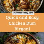 Chicken Dum Biryani is a traditional Indian rice dish made by layering marinated chicken and partially cooked basmati rice, then slow-cooking with aromatic spices using the dum (steam) method. It’s rich, fragrant, and perfect for festive meals.