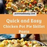 A cozy, one-skillet pasta dish inspired by classic chicken pot pie, featuring tender chicken, hearty vegetables, and a creamy savory sauce tossed with pasta for a comforting and easy meal.