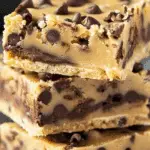 Chocolate Chip Cookie Dough Bars are a no-bake, egg-free dessert that delivers all the indulgent flavor of classic cookie dough in bar form. Made with heat-treated flour and loaded with mini chocolate chips, they’re rich, chewy, and completely safe to eat raw.
