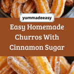 Churros with cinnamon sugar are golden, crispy on the outside, and soft on the inside. Rolled in a sweet cinnamon-sugar coating, they’re a nostalgic and irresistible fried treat that’s perfect for dipping in chocolate, caramel, or dulce de leche.