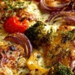 I love how simple this dish is while still feeling indulgent. Everything bakes together in one pan, which makes cleanup easier. I also enjoy how the feta adds a tangy creaminess that pairs perfectly with the roasted chicken and vegetables.