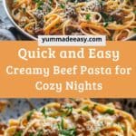 I store leftovers in an airtight container in the fridge for up to 4 days. To reheat, I warm it in the microwave or on the stove with a splash of broth or cream to keep the sauce creamy. Creamy Beef Pasta for Cozy Nights