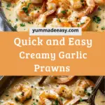 Creamy Garlic Prawns are juicy, tender prawns cooked in a rich, garlicky cream sauce that’s comforting and indulgent — ready in about 20 minutes. It’s elegant enough for a date night but easy enough for a weeknight dinner, especially served over pasta, rice, or crusty bread to soak up that luscious sauce.