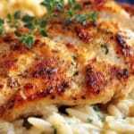 A rich and comforting one-pan dish made with tender chicken, creamy Parmesan sauce, and orzo pasta that absorbs all the savory flavors while cooking.