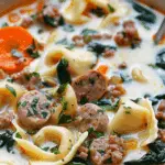 Creamy Sausage Tortellini Soup is a rich and comforting one-pot meal made with Italian sausage, cheese tortellini, spinach, and a creamy tomato-based broth. It’s a quick, hearty soup perfect for chilly nights and packed with layers of flavor.