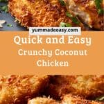 Crunchy Coconut Chicken is a tropical twist on classic chicken tenders, coated in a crispy blend of shredded coconut and panko breadcrumbs. Baked or fried to golden perfection, it’s flavorful, fun, and perfect with sweet chili or pineapple dipping sauces.