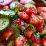 An ultra-refreshing cucumber strawberry salad with juicy watermelon, fresh mint, and a light citrus dressing—perfectly sweet, crisp, and ideal for warm days or quick gatherings.