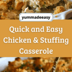 Easy Chicken & Stuffing Casserole is a cozy, one-dish comfort meal featuring tender chicken, creamy soup, and a golden buttery stuffing topping. It’s quick to prepare, made with pantry staples, and perfect for busy weeknights or feeding a crowd.