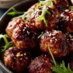 These easy Korean BBQ meatballs are tender, juicy, and coated in a sticky, sweet, and savory glaze that’s totally addictive. They’re packed with bold flavor from garlic, ginger, sesame oil, and a Korean-inspired BBQ sauce that I can whip up in minutes. Whether I serve them as a party appetizer, weeknight dinner, or meal prep option, they’re always a hit.