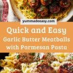 Tender garlic butter meatballs served over creamy parmesan pasta for a rich, comforting dinner that feels cozy and indulgent.