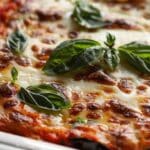 A comforting gluten-free eggplant parmesan with crispy coated eggplant slices layered with rich tomato sauce and melted cheese.