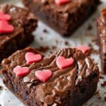I love this recipe because it turns a classic chocolate treat into something playful and festive. The brownies come out dense, chewy, and packed with rich chocolate flavor. I can keep them simple or go all out with icing, sprinkles, or a dusting of powdered sugar. And because I use a heart-shaped cookie cutter, each brownie looks like a mini gift.