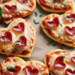 These heart-shaped mini pizzas are fun, festive, and delicious — perfect for Valentine’s Day, parties, or making pizza night extra special. They’re cheesy, crispy, and totally customizable with your favorite toppings.