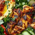 I sometimes use shrimp or tofu instead of chicken. For extra spice, I add a spoonful of harissa or sriracha to the marinade. If I’m going low-carb, I swap the rice for cauliflower rice or stick to leafy greens. And when I want a shortcut, I use rotisserie chicken and focus on building the bowls with fresh salad and hummus.