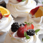 Mini Pavlovas are elegant, individual meringue desserts with crisp exteriors and marshmallow-soft centers, topped with whipped cream and fresh fruit. They’re light, naturally gluten-free, and perfect for special occasions or entertaining.