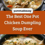 One Pot Chicken Dumpling Soup is a hearty, comforting meal with tender chicken, vegetables, and fluffy homemade dumplings all simmered together in a savory broth. It’s cozy, filling, and made in one pot for easy cleanup.
