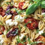 Perfect Orzo Pasta Salad with Feta and Sun Dried Tomatoes is a fresh, Mediterranean-inspired dish made with tender orzo pasta, tangy sun dried tomatoes, and creamy feta cheese. It’s quick to prepare and bursting with bold, savory flavor—great for picnics, lunches, or a light dinner.
