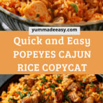 A flavorful homemade copycat of Popeyes Cajun Rice featuring seasoned ground meat, aromatic vegetables, and bold Cajun spices mixed with fluffy rice.