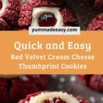 Red Velvet Cream Cheese Thumbprint Cookies are soft, chewy cookies with a rich red velvet flavor and a creamy, tangy cream cheese center. They’re festive, fun to make, and perfect for holidays or special occasions.