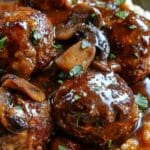 Tender beef meatballs simmered in a rich, savory mushroom gravy, delivering all the classic comfort of Salisbury steak in an easy, hearty dinner.
