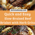 Slow-Braised Beef Brisket with Herb Grits is the ultimate comfort food—tender, melt-in-your-mouth beef simmered in a rich, savory sauce and served over creamy, buttery grits infused with fresh herbs. It’s soulful, cozy, and perfect for a weekend dinner that feels extra special.
