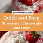 A creamy and indulgent strawberry cheesecake cold foam that adds a café-style, dessert-like touch to iced drinks with a perfect balance of sweetness and tang.