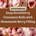 Strawberry Cinnamon Rolls are soft, fluffy rolls filled with sweet cinnamon sugar and juicy strawberries, topped with a creamy vanilla glaze for a fruity twist on a classic favorite.