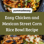 This street corn chicken rice bowl is creamy, smoky, and zesty, combining juicy seasoned chicken, cheesy street corn, and fluffy rice for a hearty, comforting meal that’s quick and customizable.