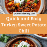 Turkey sweet potato chili is a hearty, healthy one-pot meal made with lean ground turkey, tender sweet potatoes, and a richly spiced tomato broth. It’s comforting, nutritious, and perfect for weeknight dinners or meal prep.