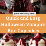 Halloween vampire bite cupcakes are spooky, sweet, and delightfully dramatic. With rich chocolate cake, blood-red raspberry filling, and eerie ‘bite marks’ on top, they’re the kind of treat I love bringing to Halloween parties — creepy and delicious in every bite.