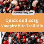 Vampire Bite Trail Mix is a spooky, sweet, and salty snack perfect for Halloween. It’s packed with festive candies, dried fruit, and crunchy snacks—great for parties, treat bags, or snacking all October long.