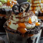 Witch’s Cauldron Pudding Cups are spooky, fun, and no-bake Halloween treats made with chocolate pudding, crushed cookies, and festive candy decorations. These kid-friendly cups are quick to make, customizable, and perfect for a party or playful dessert.