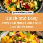 A refreshing and vibrant Thai-inspired salad featuring sweet mango, crisp vegetables, tangy dressing, and crunchy peanuts for a perfect balance of flavors and textures.
